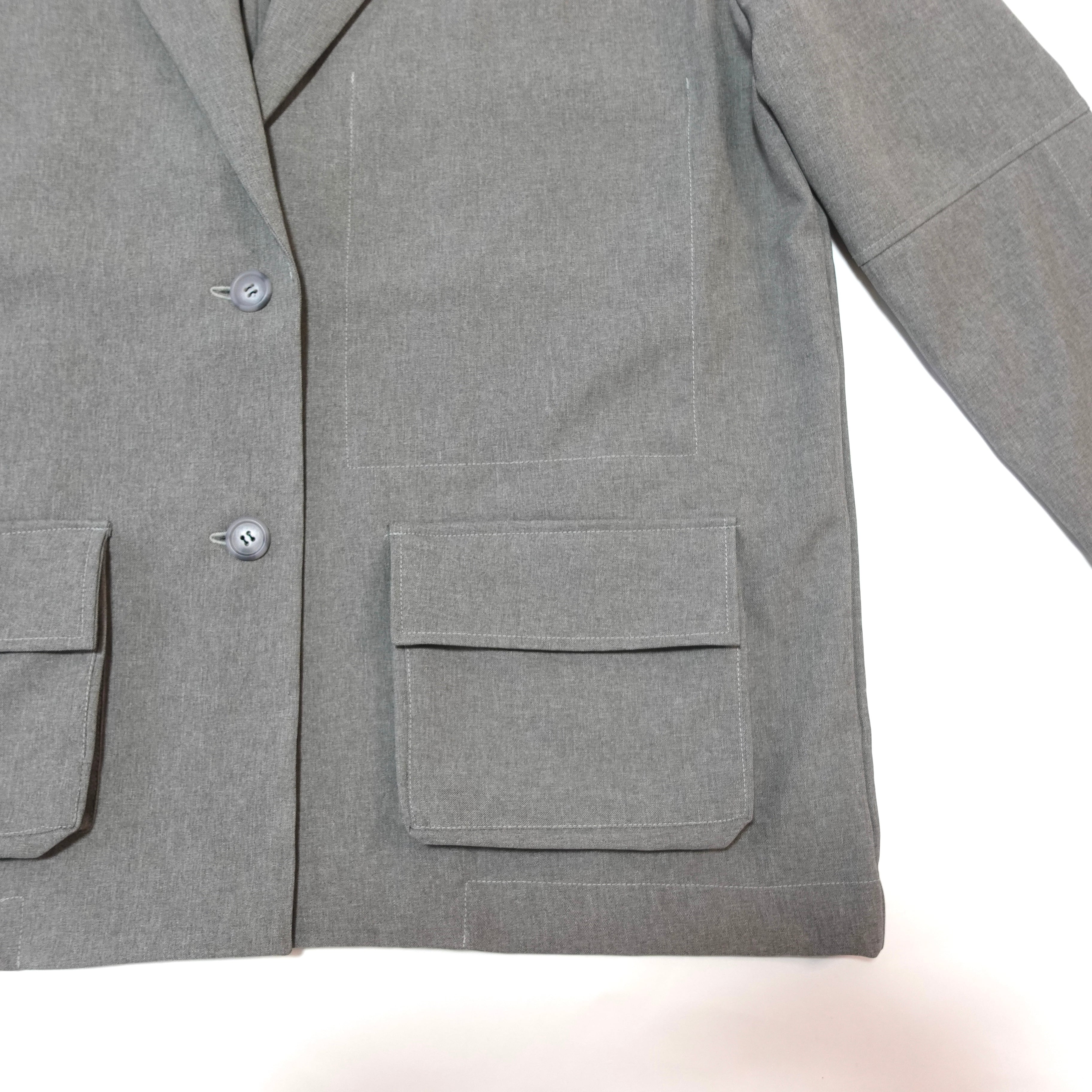 連鎖ボタン袖のイージージャケットがワークポケットと