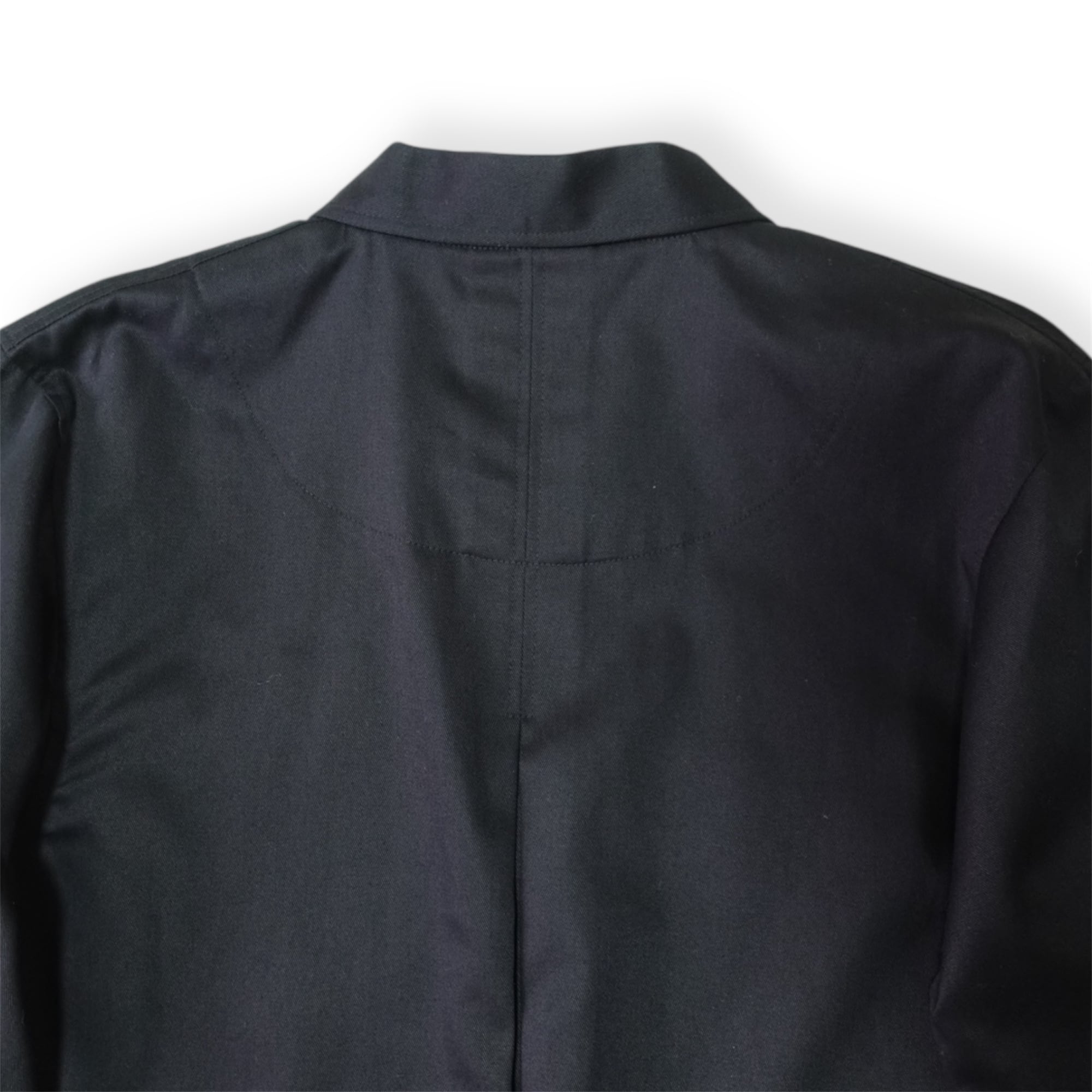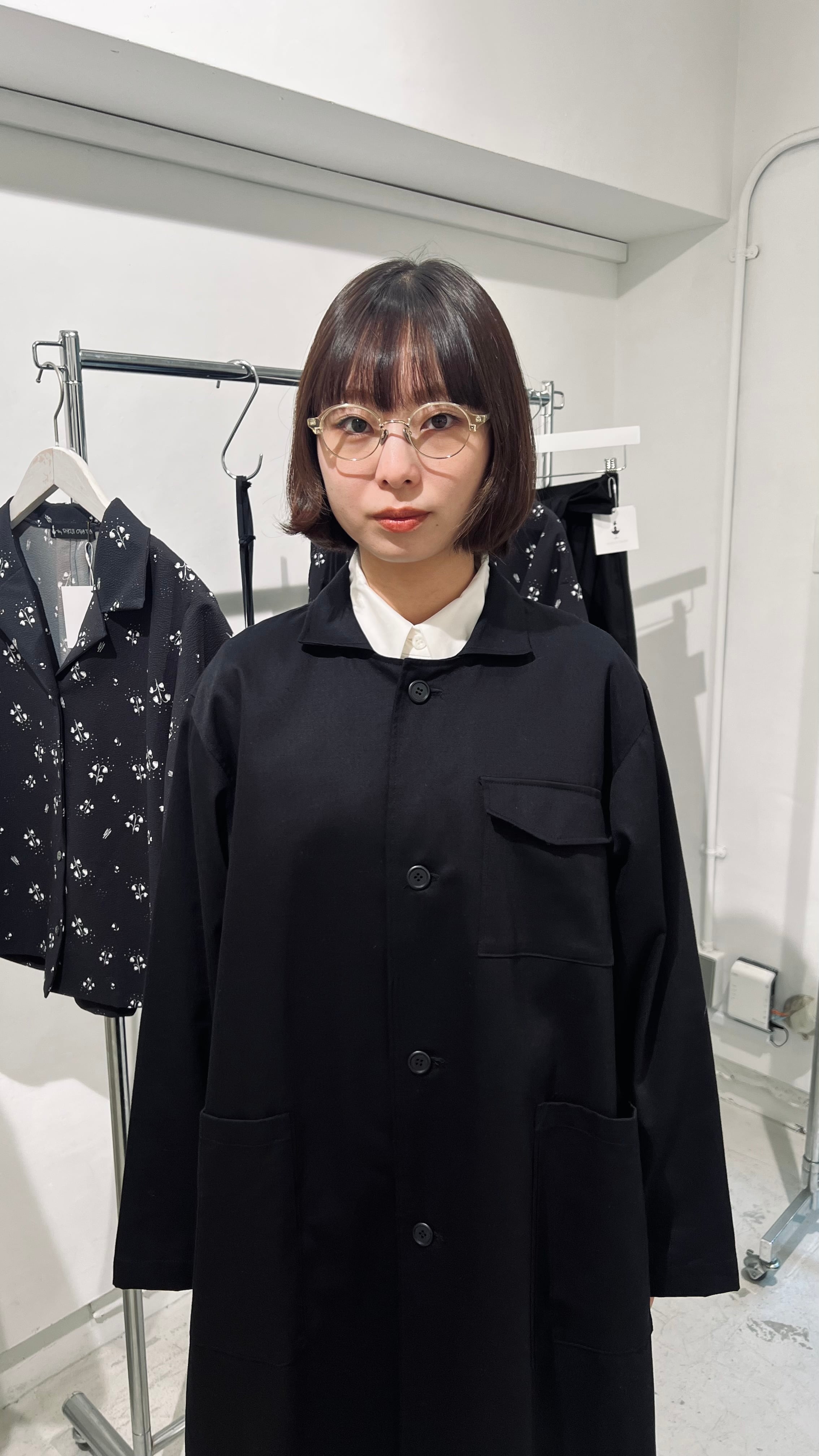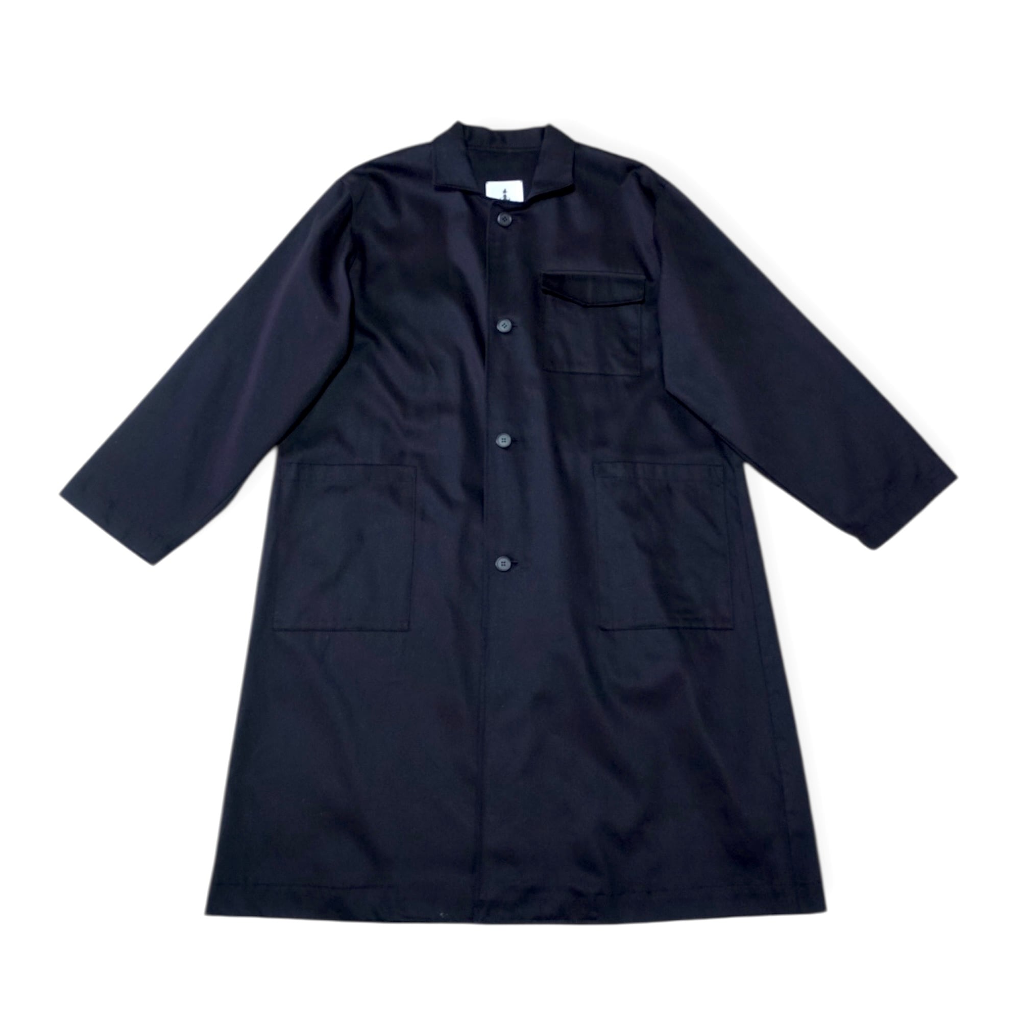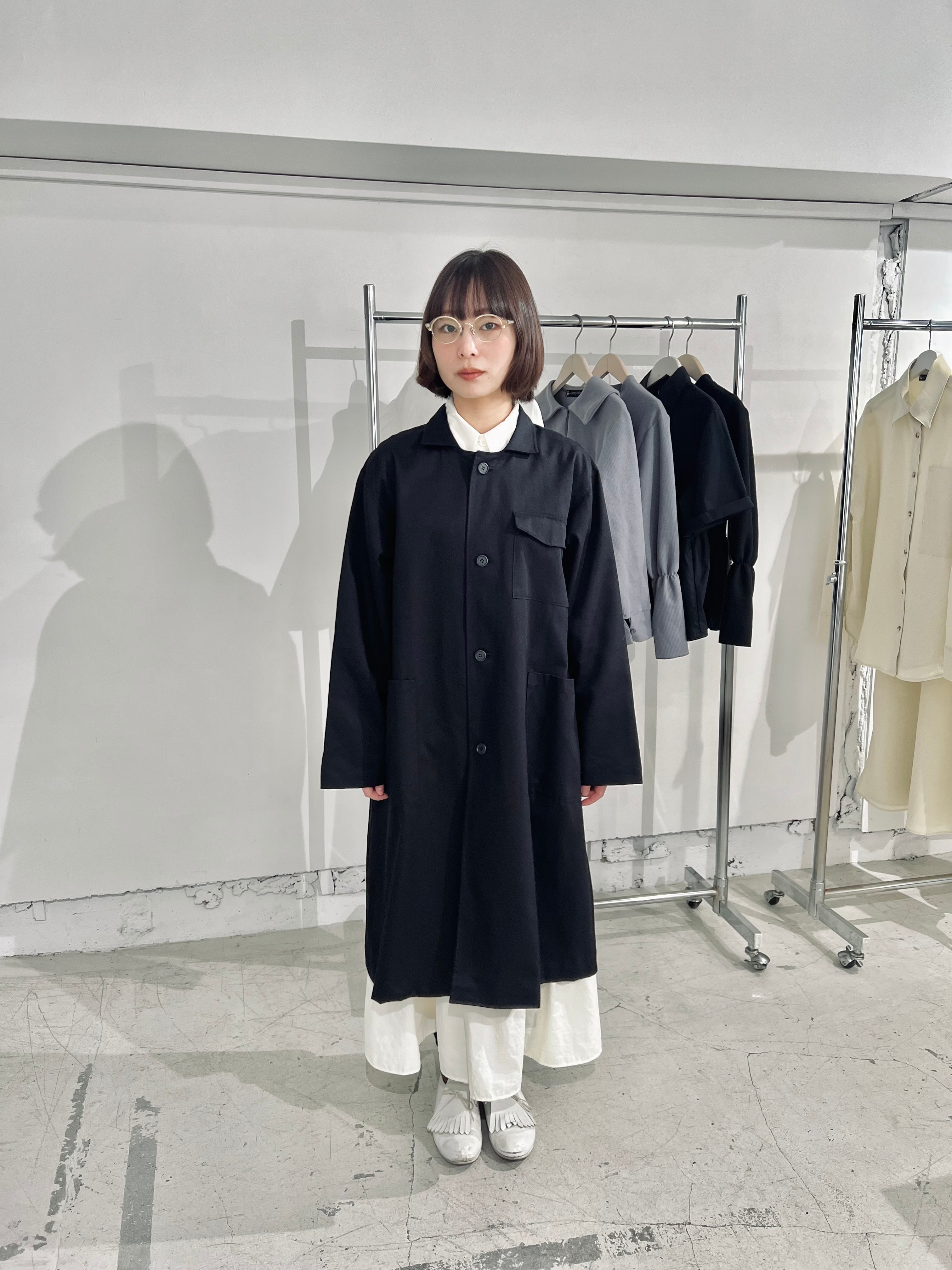 大きなワークポケットと独特な角度の襟が印象的なショップコートが登場。
