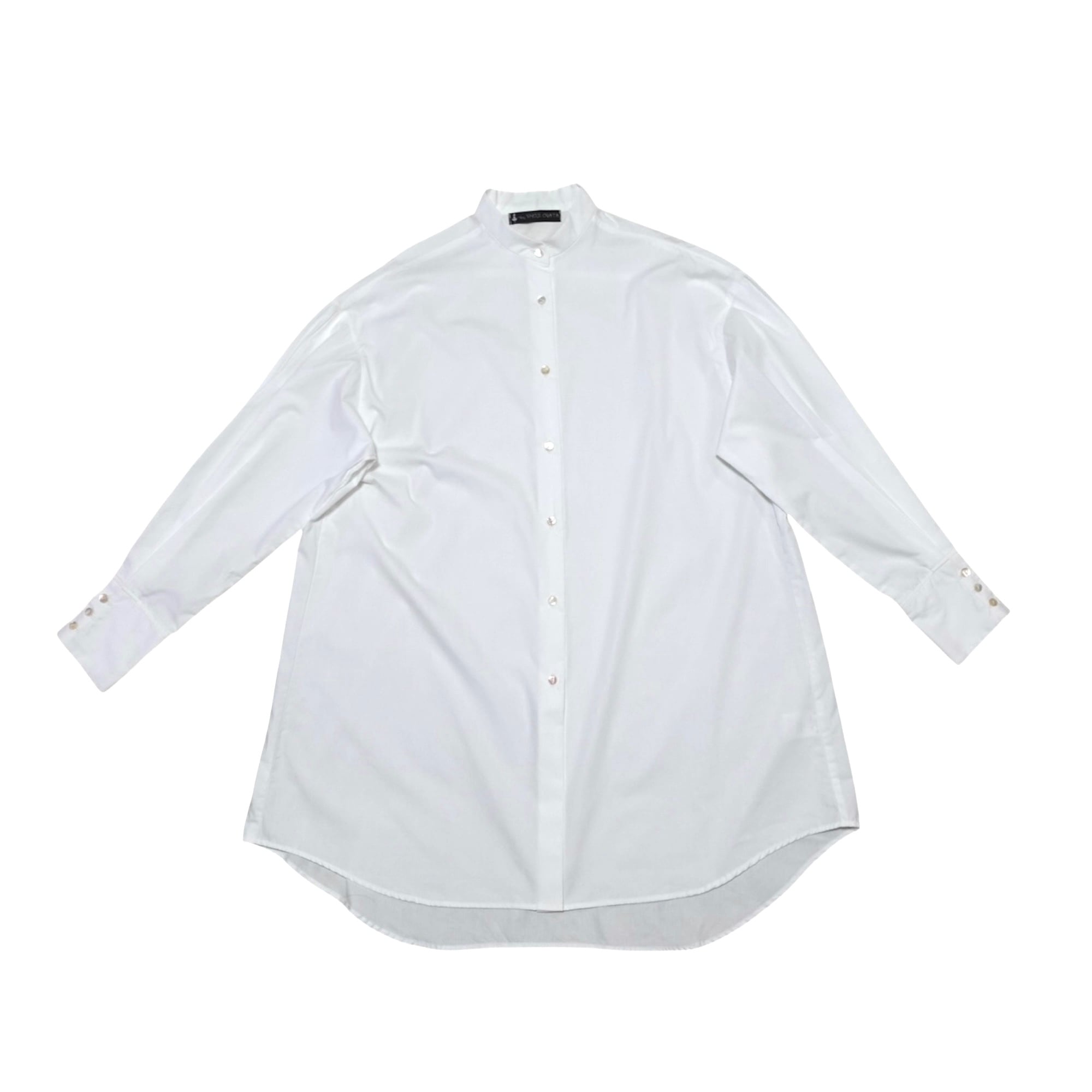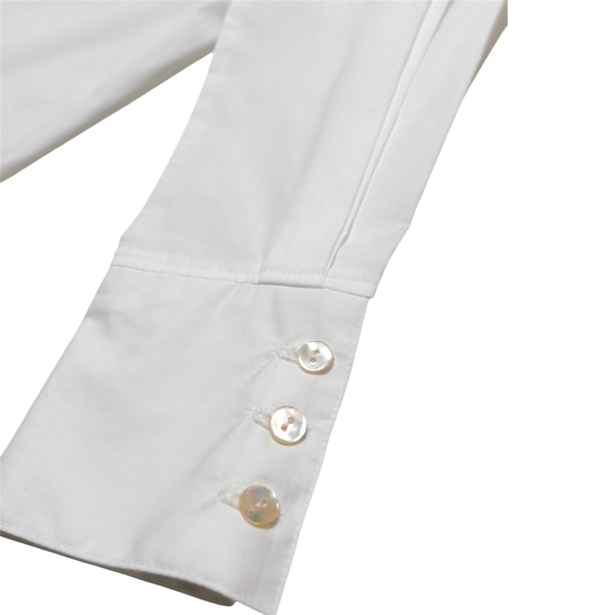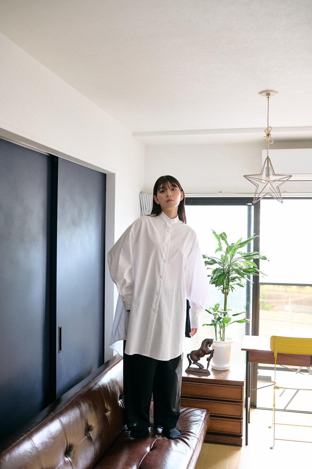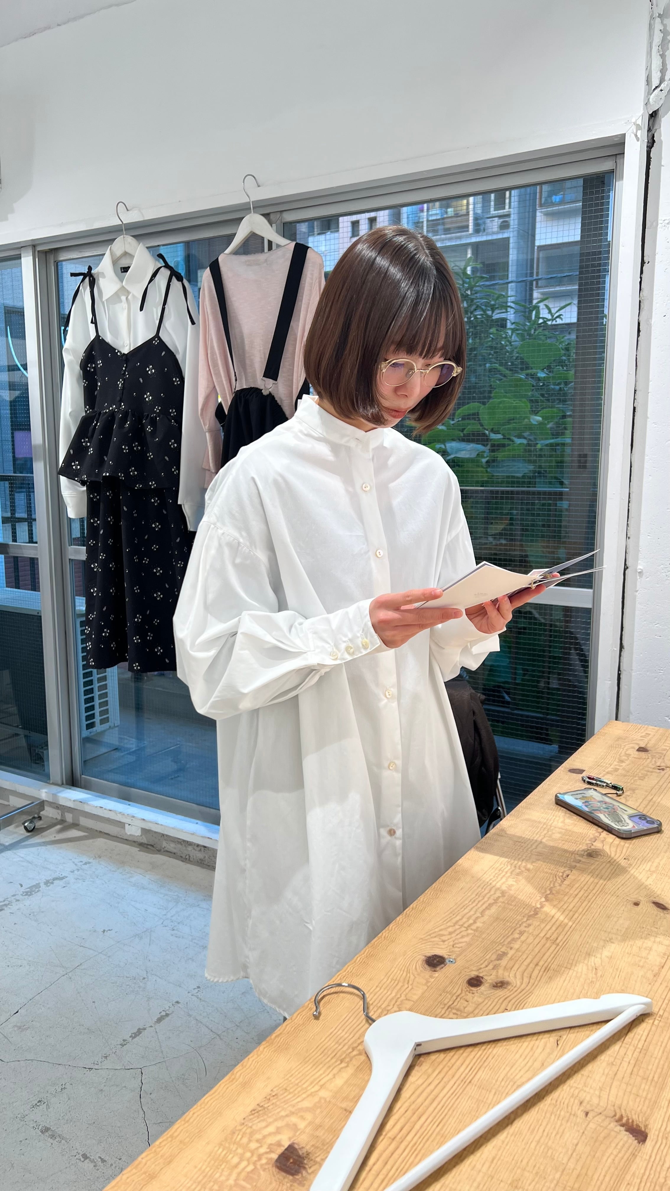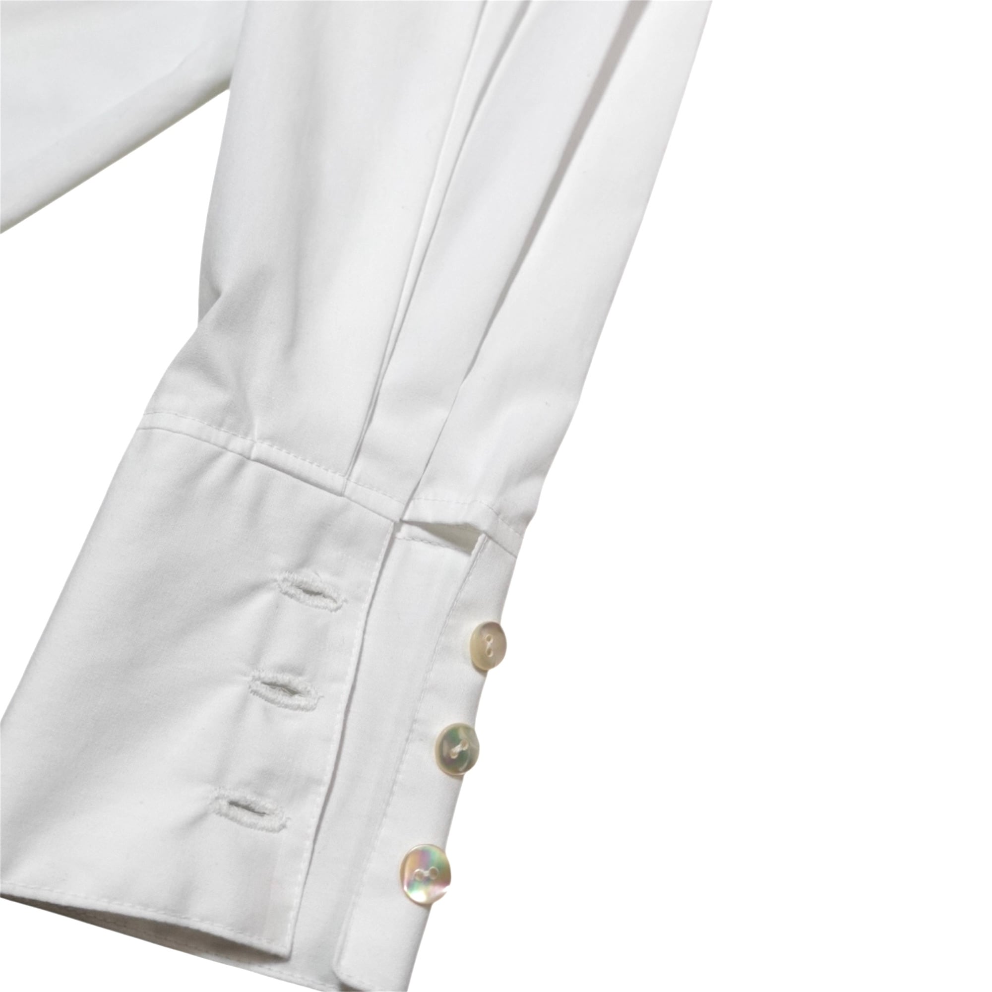 袖口はタックの上にタックを重ねた面白い作りになっており、シンプルだけど個性的な一枚に。