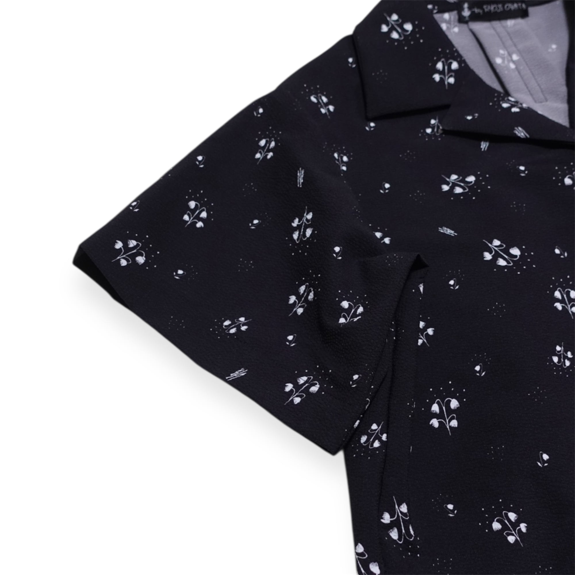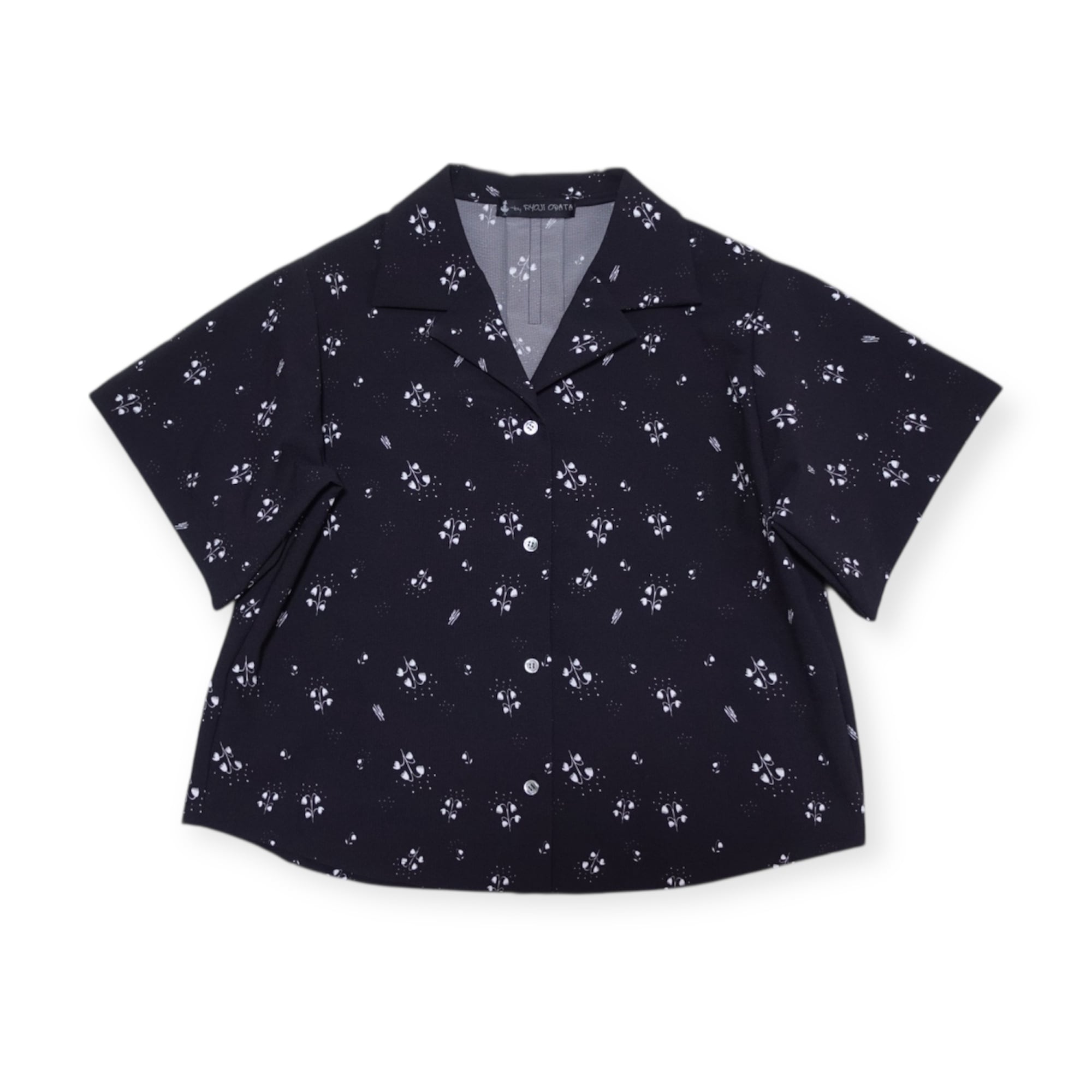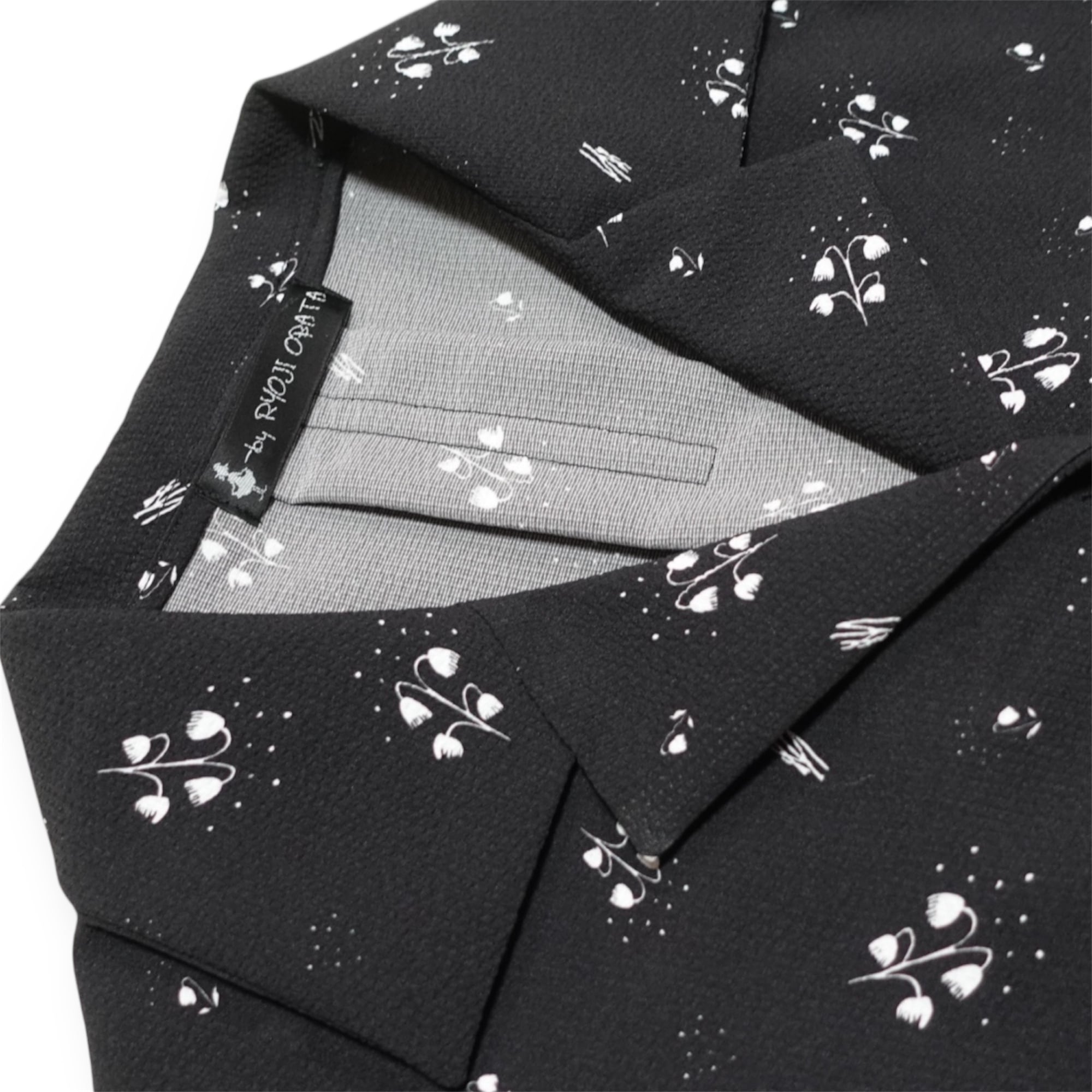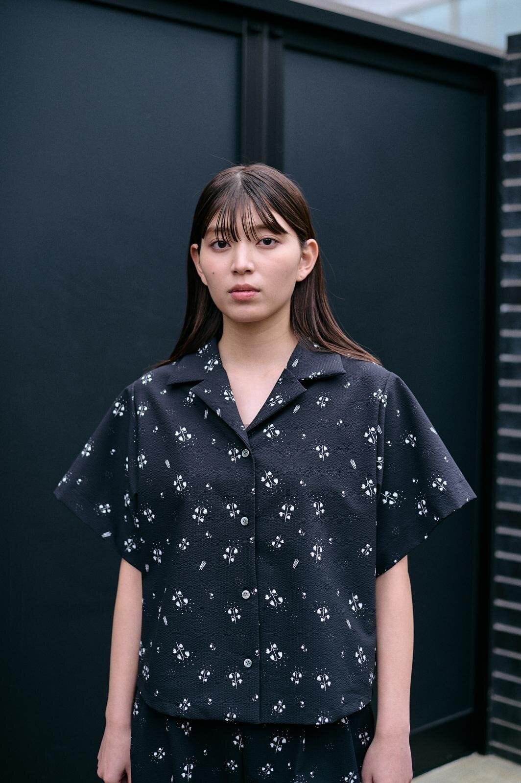 シアサッカー生地に手描きのスズラン柄がプリントされたオープンカラーシャツ。 速乾性がありシワにもなりにくく夏に重宝したい一枚です。 品番:1656-003 サイズ:F 生産地:日本 混率:ポリエステル 100% 着丈:62cm 身幅:56cm 肩幅:41cm 袖丈:22cm ルックモデル:166cm 《お手入れ》 水洗い可能 《生地感》 春夏向け / 速乾性 / 防シワ加工 ※生産において若干のサイズ差がある場合がございます。 ※光やモニターの加減によって、多少色味が異なる場合がございます。