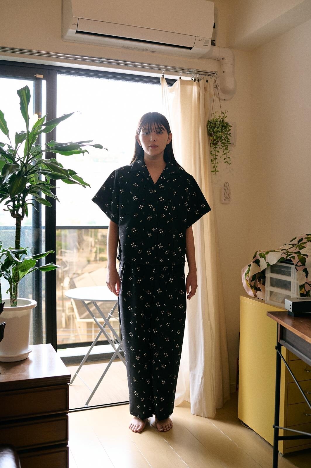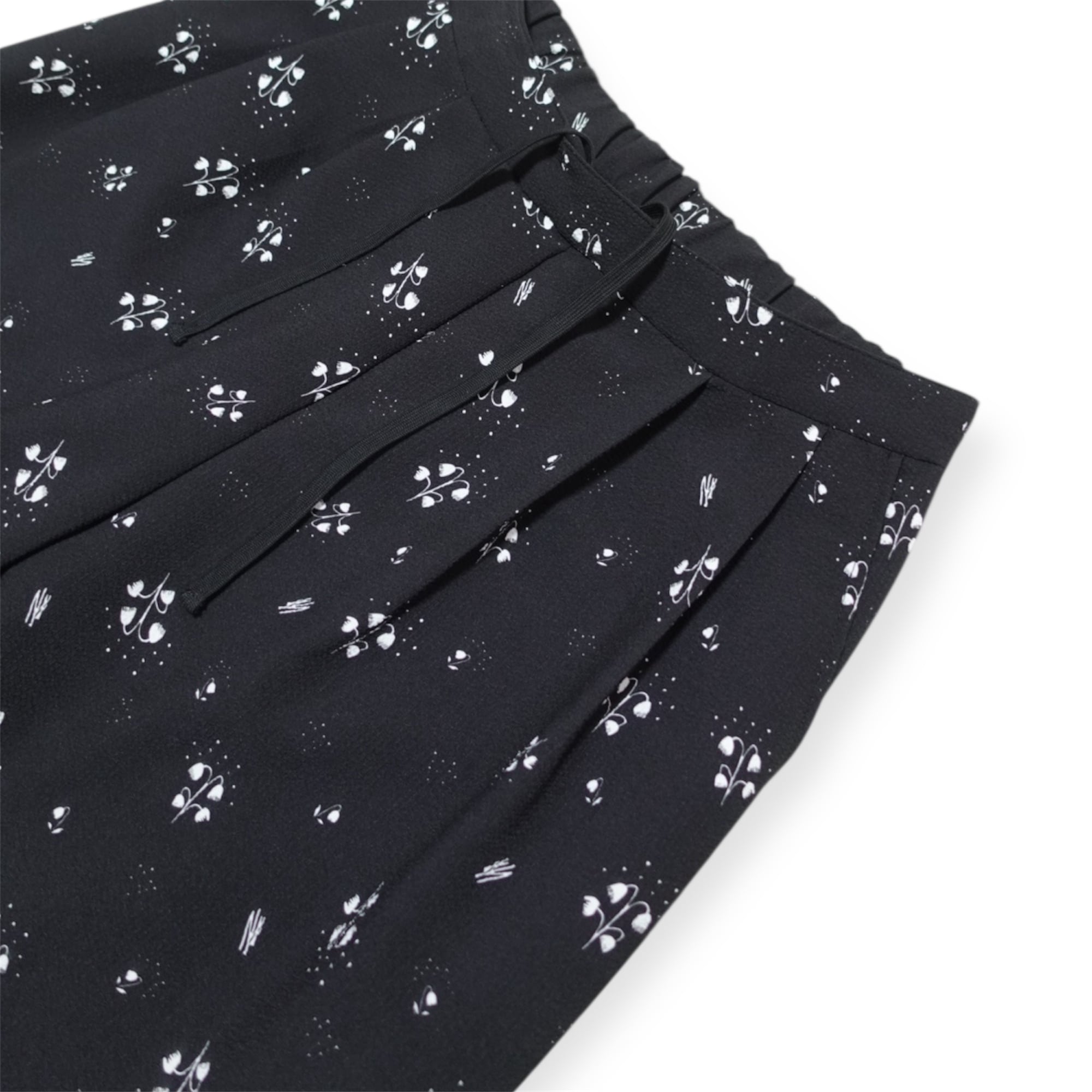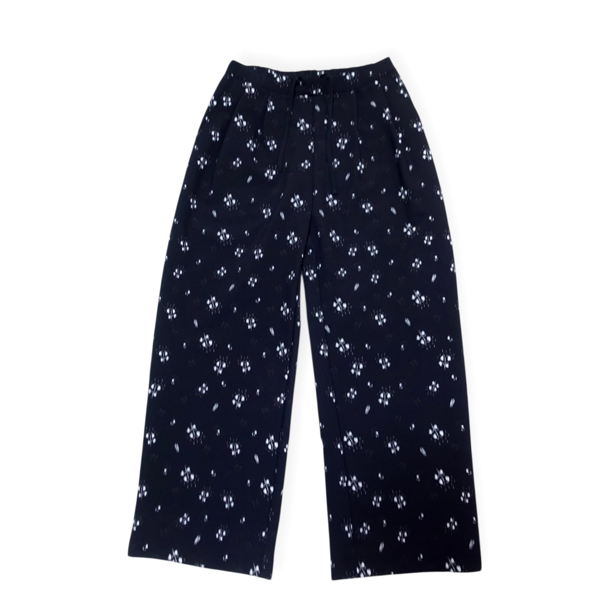 シアサッカー生地に手描きのスズラン柄がプリントされたイージーパンツ。 イージーパンツながらフロントはタックが入っておりクラシカルな印象。 品番:1650-002 サイズ:F 生産地:日本 混率:ポリエステル 100% 着丈:96cm ウエスト幅:53cm ルックモデル:166cm 《お手入れ》 水洗い可能 《生地感》 春夏向け / 速乾性 / 防シワ加工 ※生産において若干のサイズ差がある場合がございます。 ※光やモニターの加減によって、多少色味が異なる場合がございます。