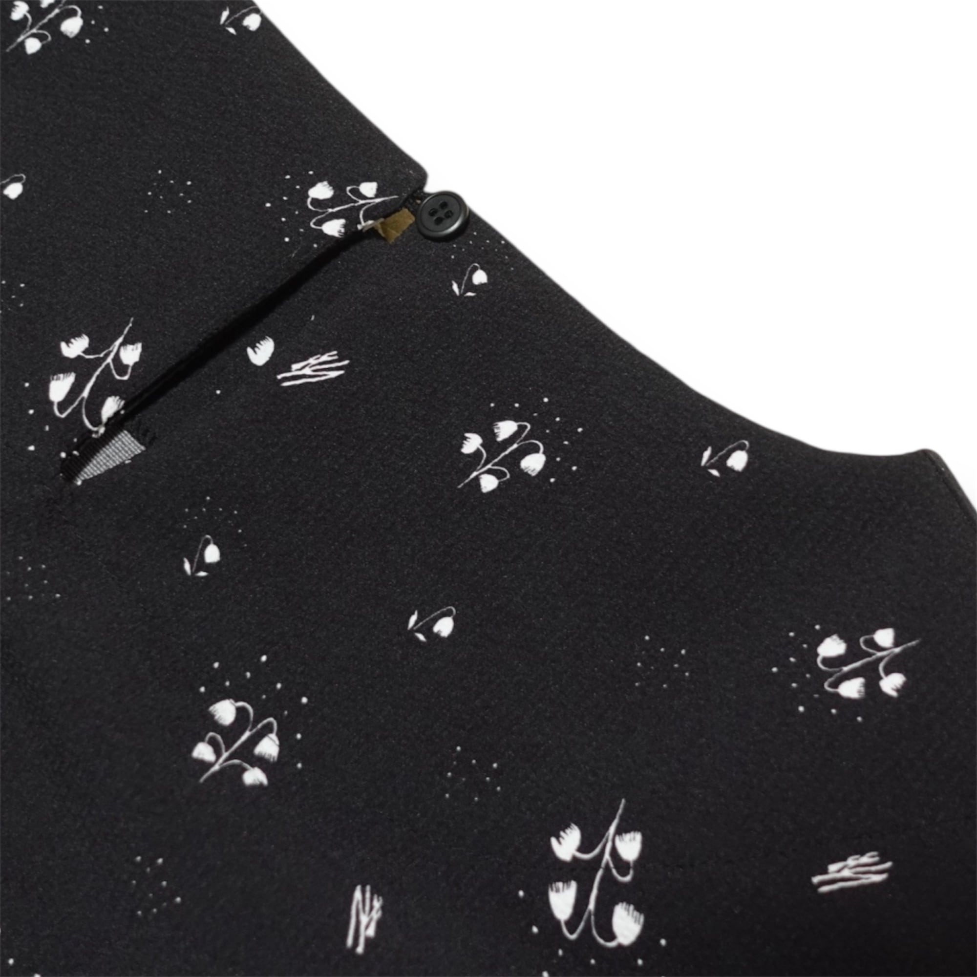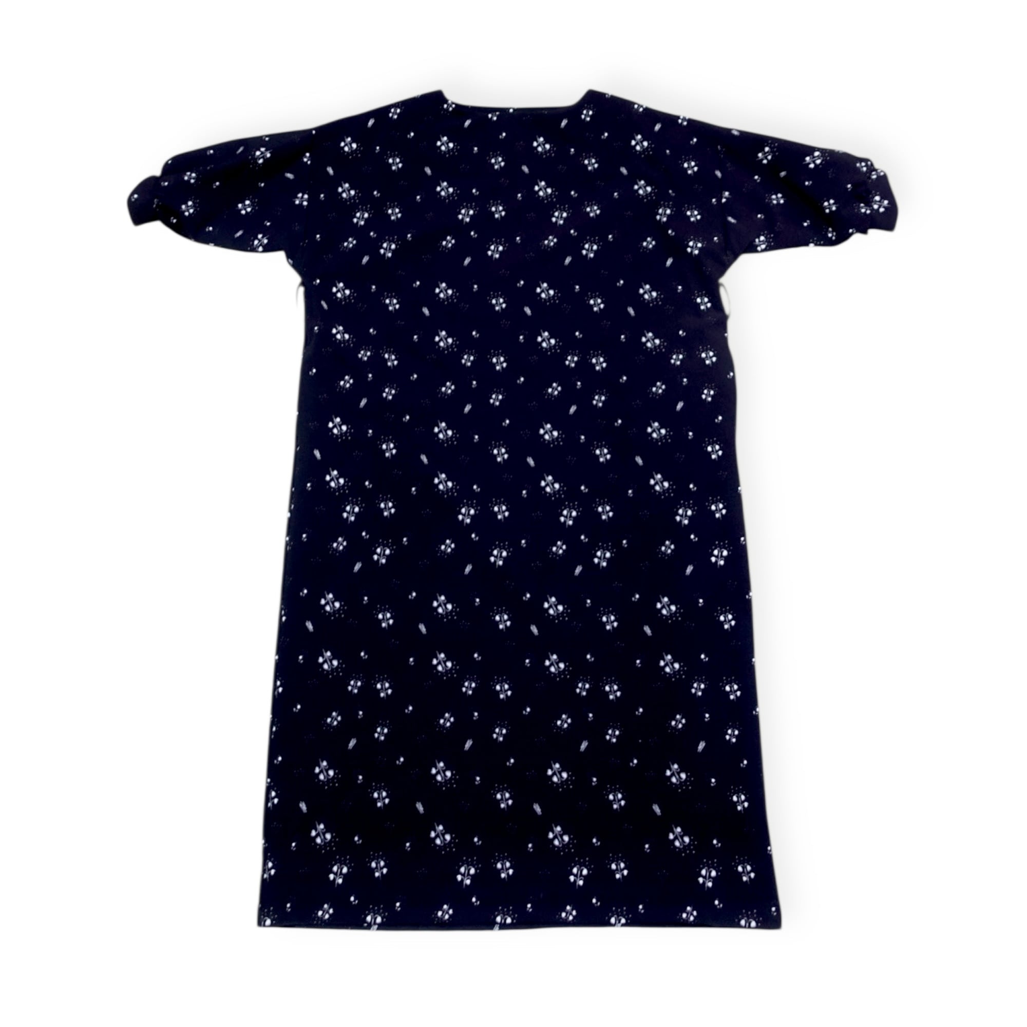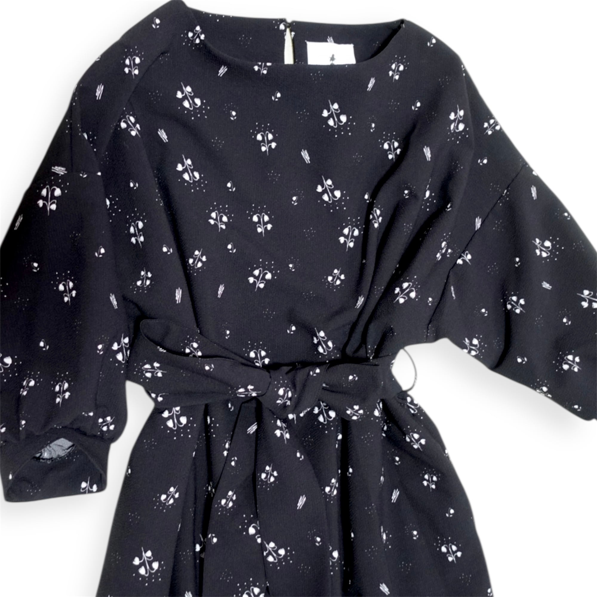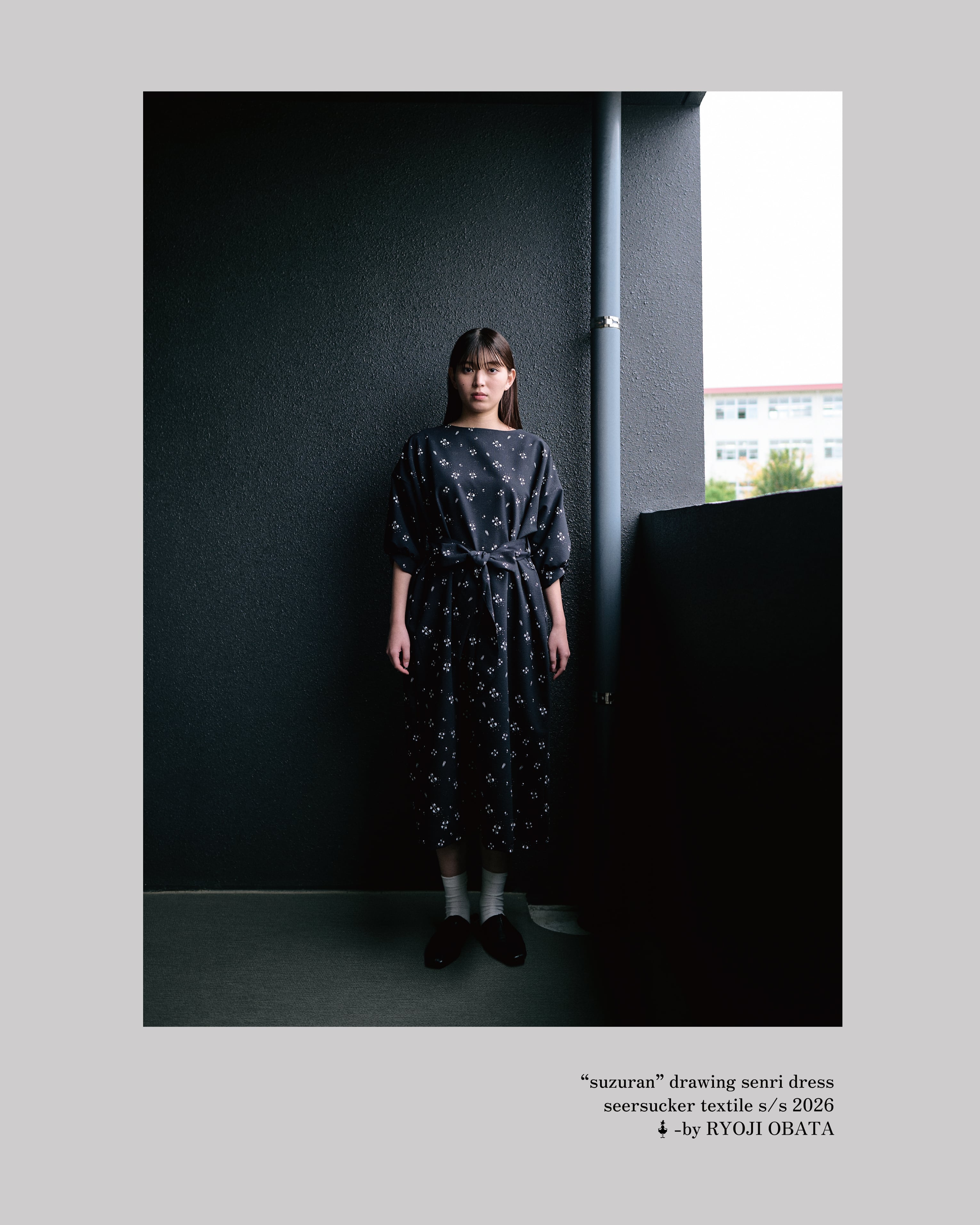 シアサッカー生地に手描きのスズラン柄がプリントされたワンピースドレス。